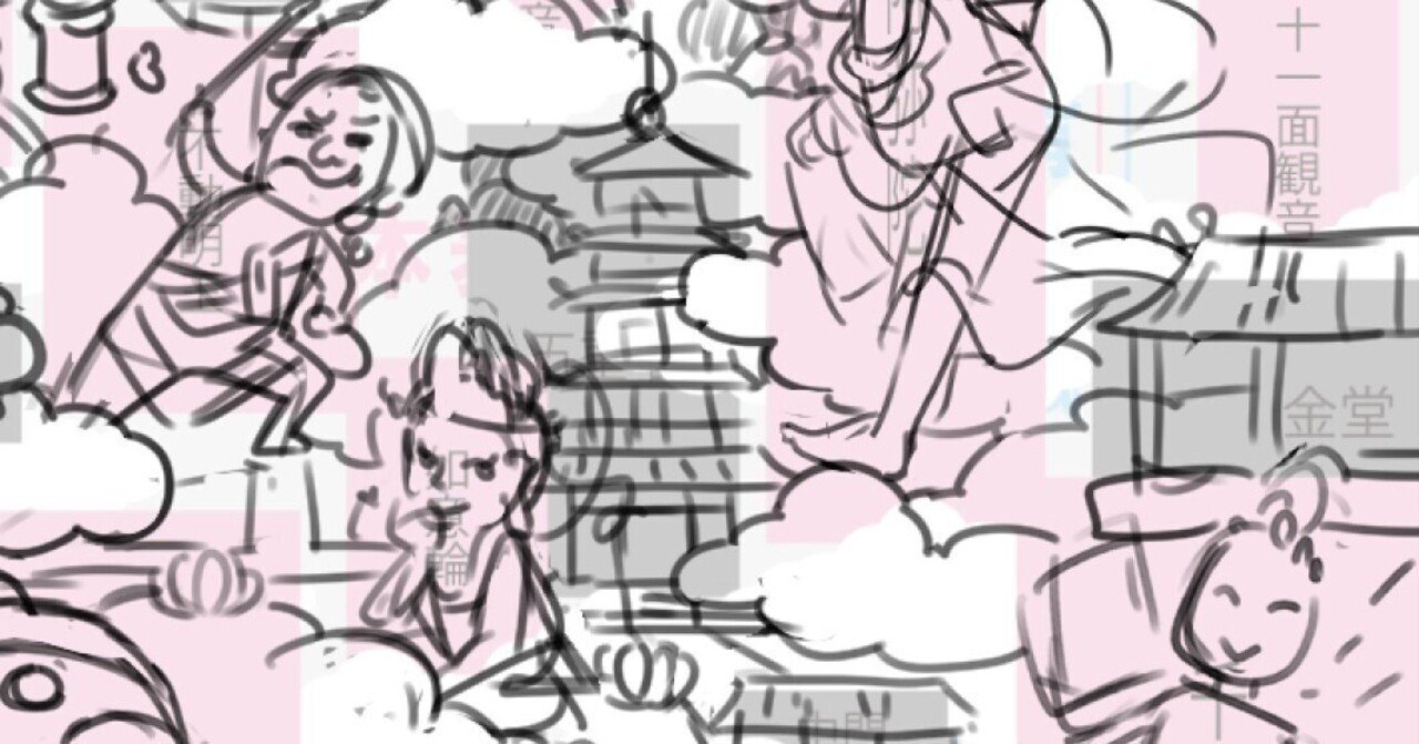 「絵解き」のようによく見るとあの仏像が…!という発見があるような作品です。